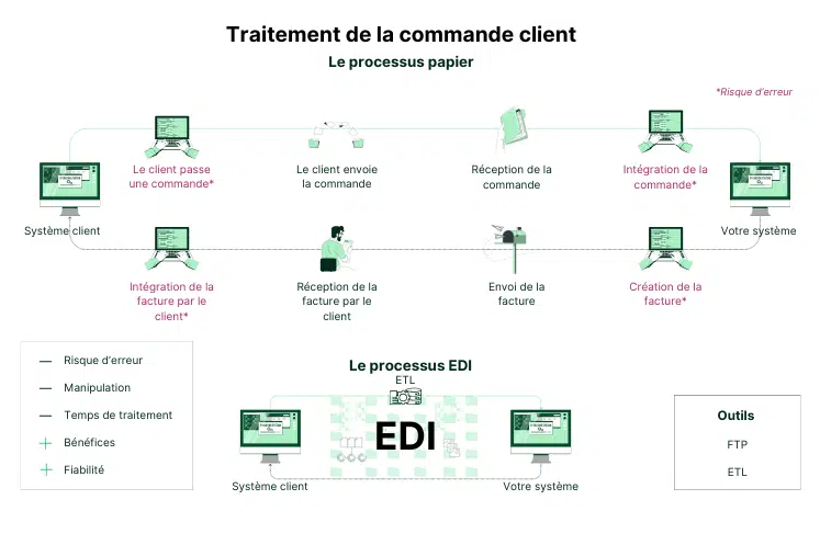 De leur côté, les échange de données informatisées adoptent une approche différente en se concentrant sur la standardisation des formats de données. Cela permet de favoriser des échanges uniformes entre des entreprises diverses.